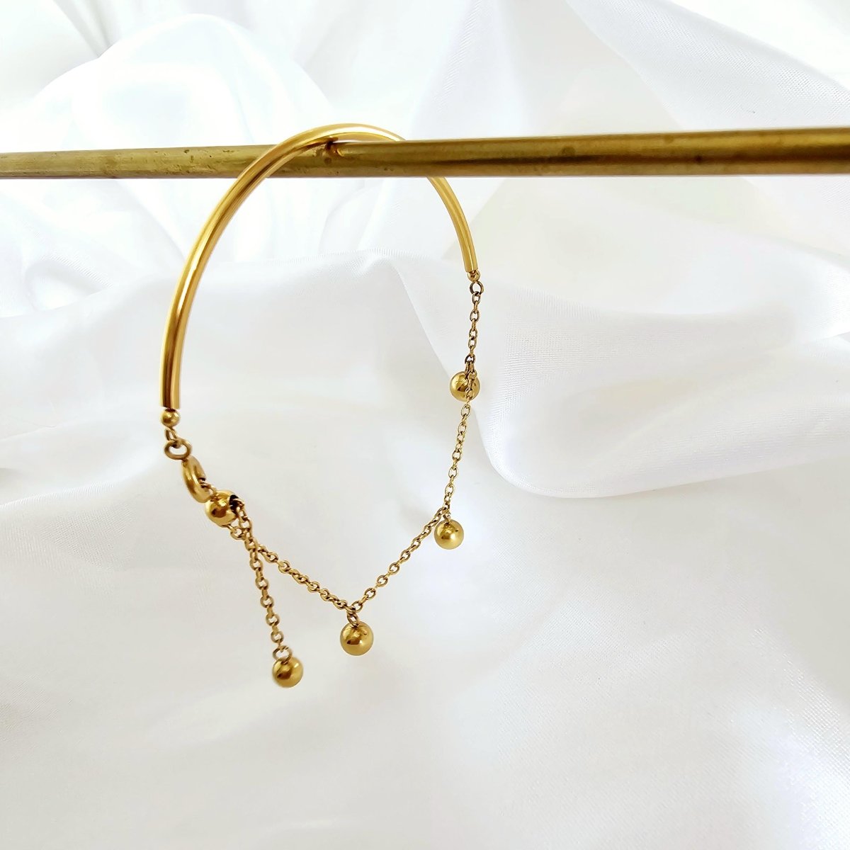 Introducing a stunning bracelet featuring 16k gold plating over sterling silver, adorned with round bell charms This adjustable chain bracelet is the perfect accessory for stacking or wearing solo, adding a touch of elegance to any outfit. With its timeless and practical design that comes with slider adjustability as well as the hook, it’s an ideal gift for any size wrists. Elevate your jewellery collection with this versatile and dainty piece!