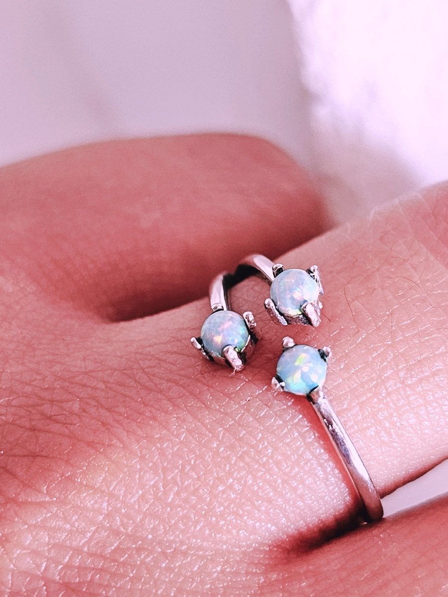 With a simple minimalist design,this gorgeous Opal ring is slightly adjustable; simply slip it through your fingers and adjust the fit by gently pressing the soft edges of this smooth bendable metal according to your comfort.