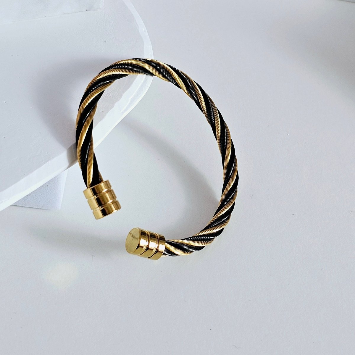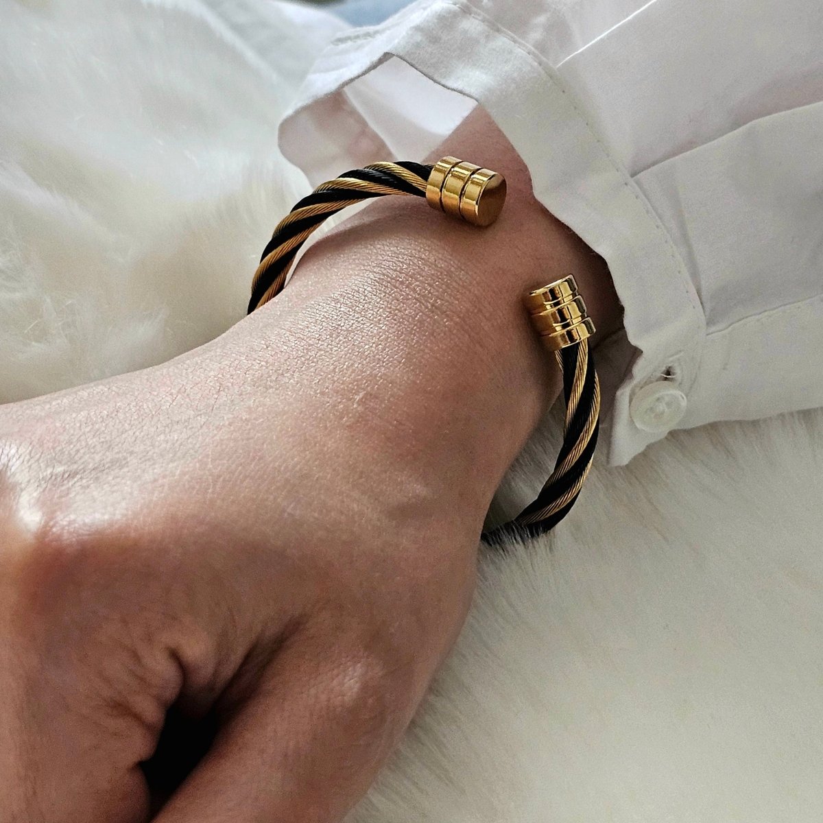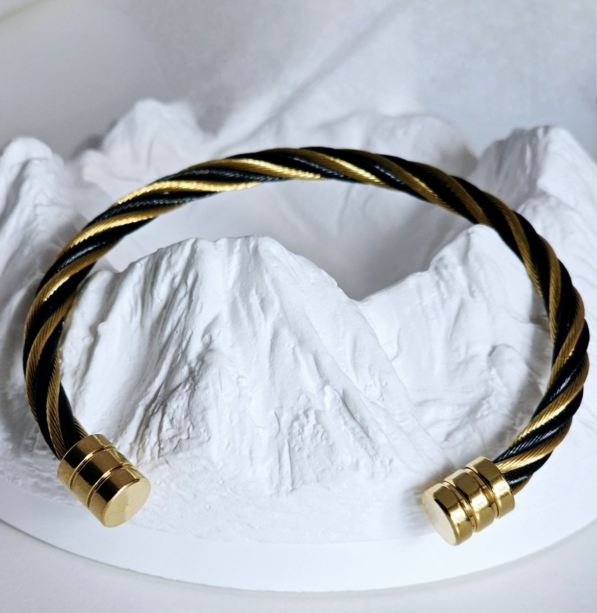 Meet your new go-to accessory: the Black & Gold Braided Open Cuff Bangle Bracelet. With chic 18k gold plating and a cool braided design, this tarnish-free bangle is perfect for everyday wear. Whether you wear it solo or stack it up, it’s the ultimate piece to elevate your style game. Effortlessly blend edgy and classy vibes, making it a must-have for your jewelry collection. Perfect for adding a little sparkle to your day-to-day outfits!
