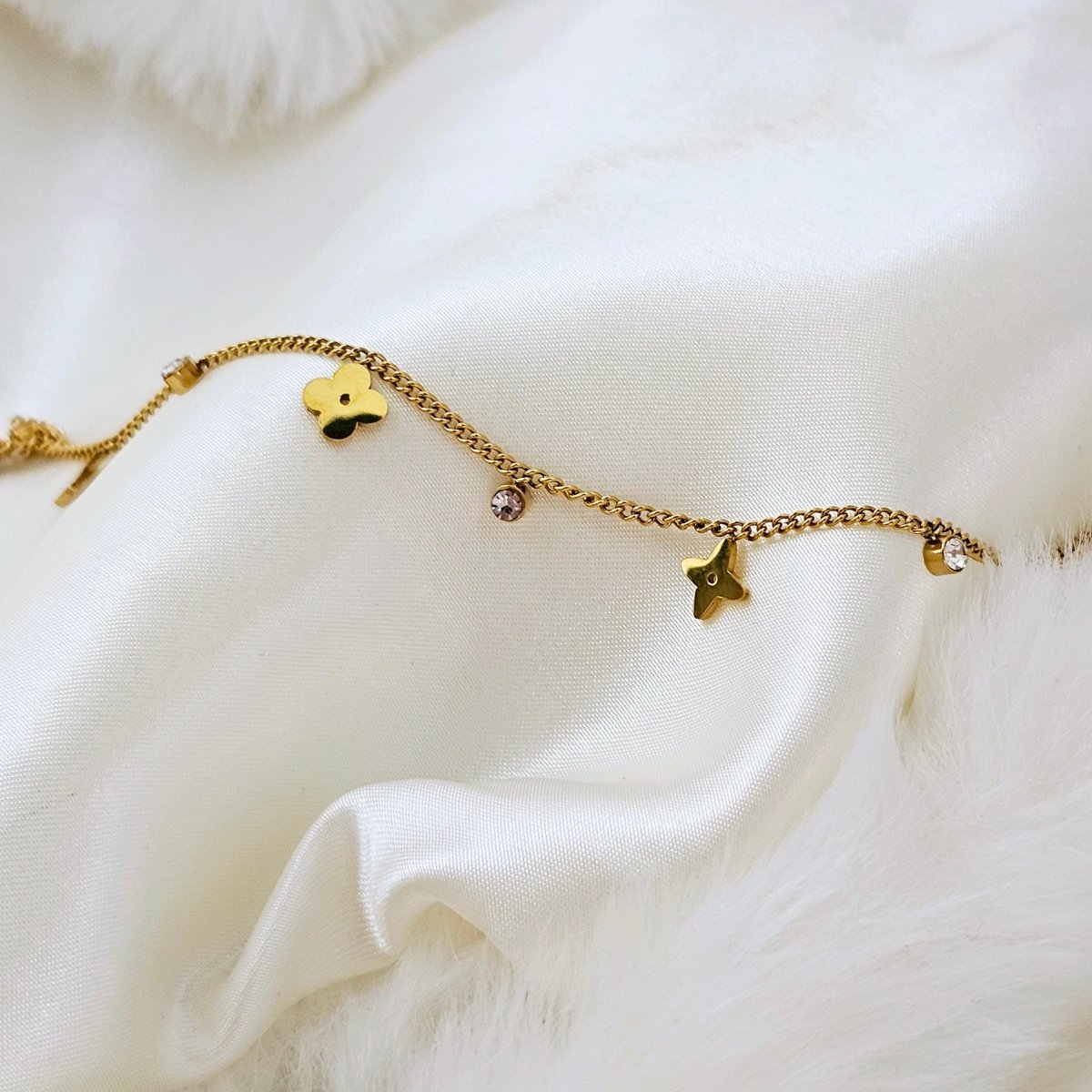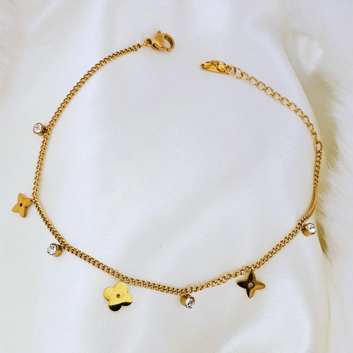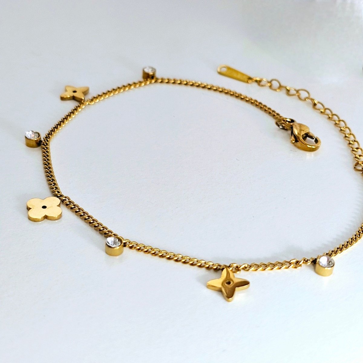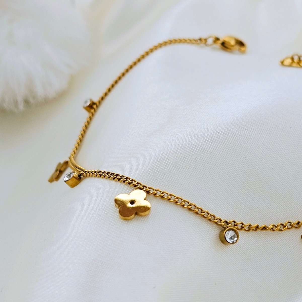 Embrace the charm of this simple and dainty link chain Anklet with clover charms and round zirconia charms. It's a truly exceptional statement piece that speaks volumes of charm, making it a delightful gift or a precious addition to your own jewellery collection.