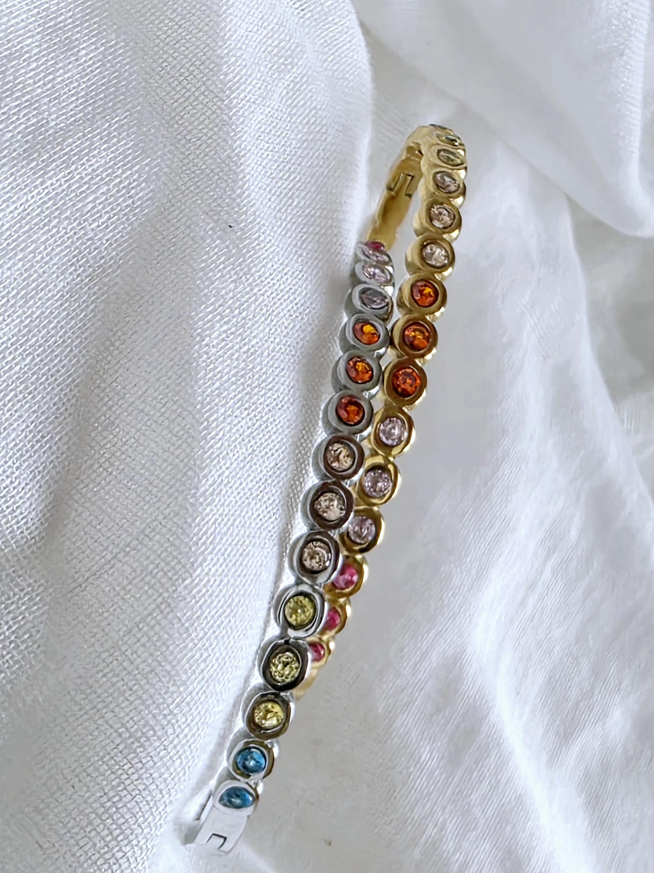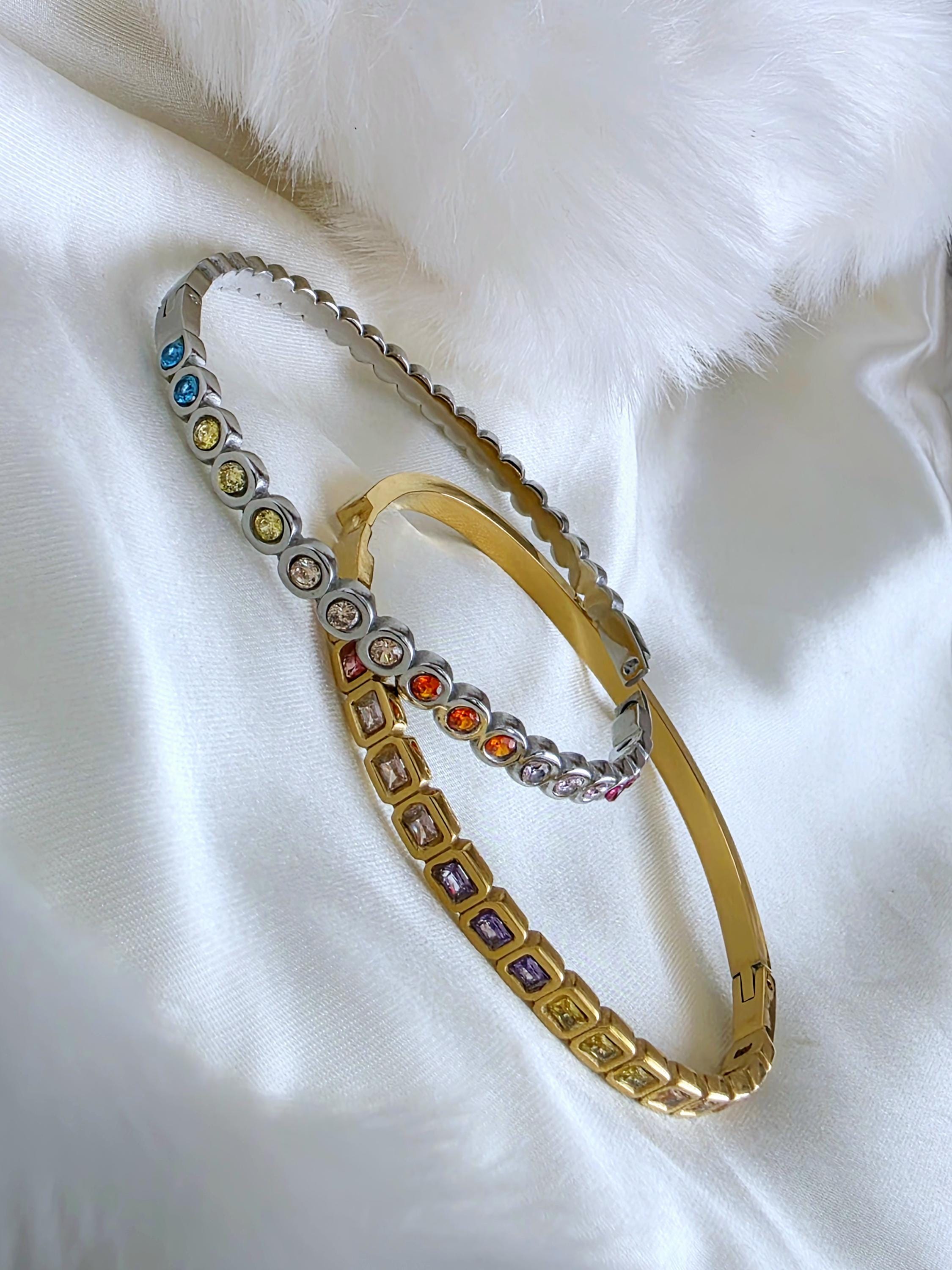 Elevate your everyday look with this stunning curved rectangular pavé set bracelet, crafted with premium-cut cubic zirconia gems for maximum sparkle and brilliance. Designed with a sleek hinged clasp for easy wear, this bracelet combines luxury and durability in one timeless piece.