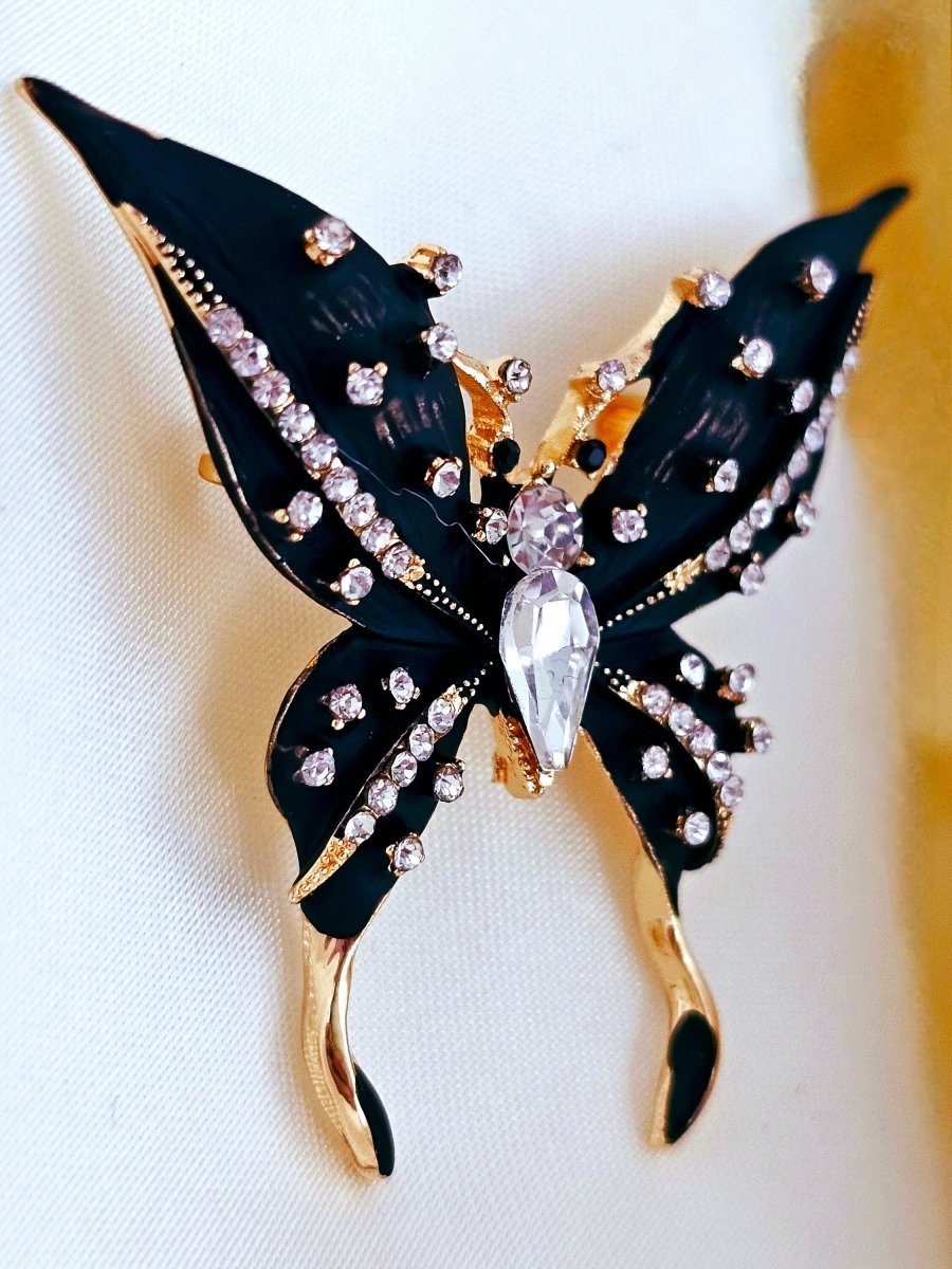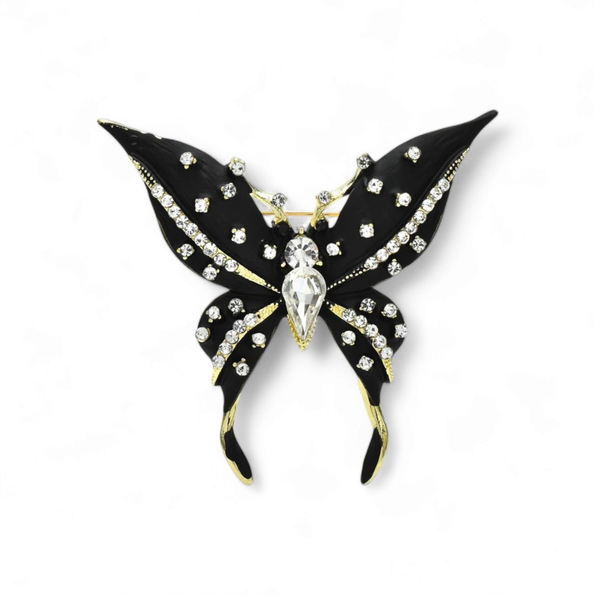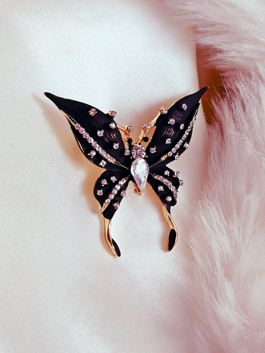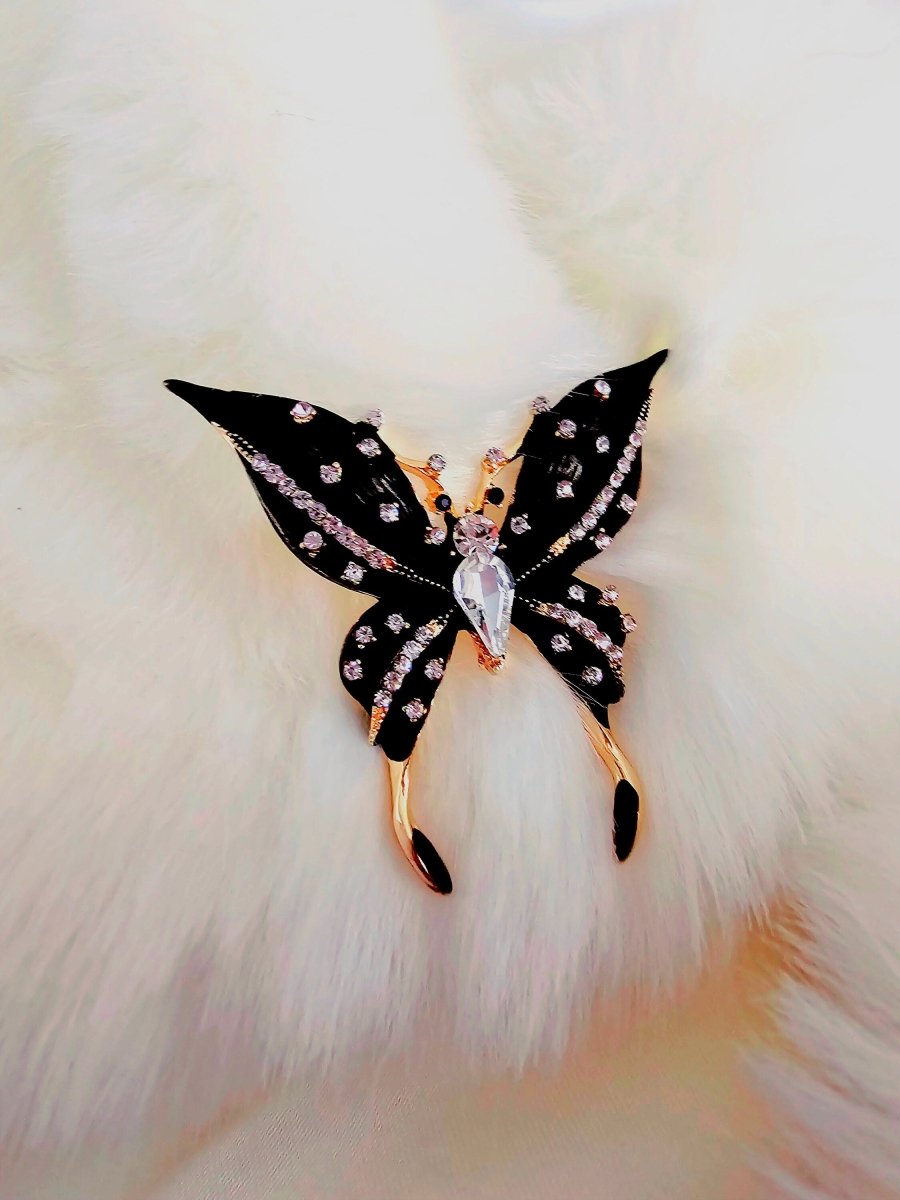 Delicate,quirky and oh so elegant! A stunning 14K Gold plated Black Butterfly studded with cubic zirconia crystal gems.
