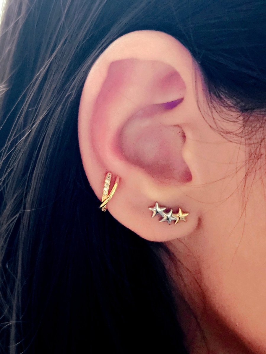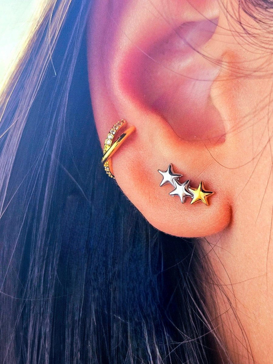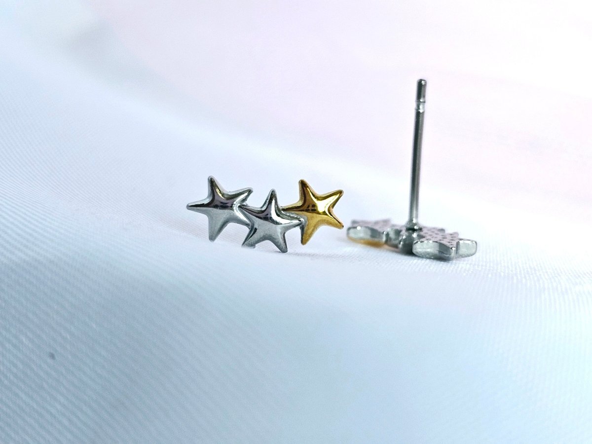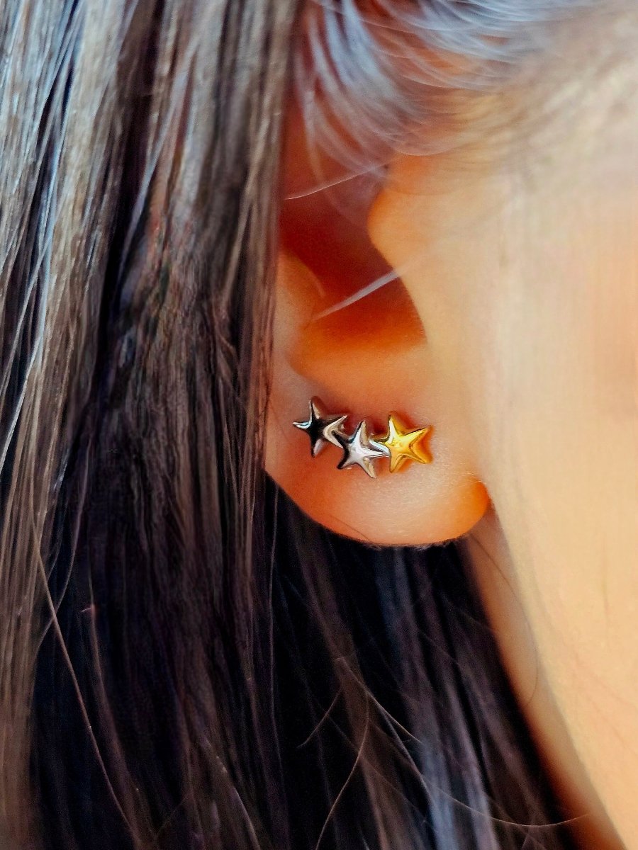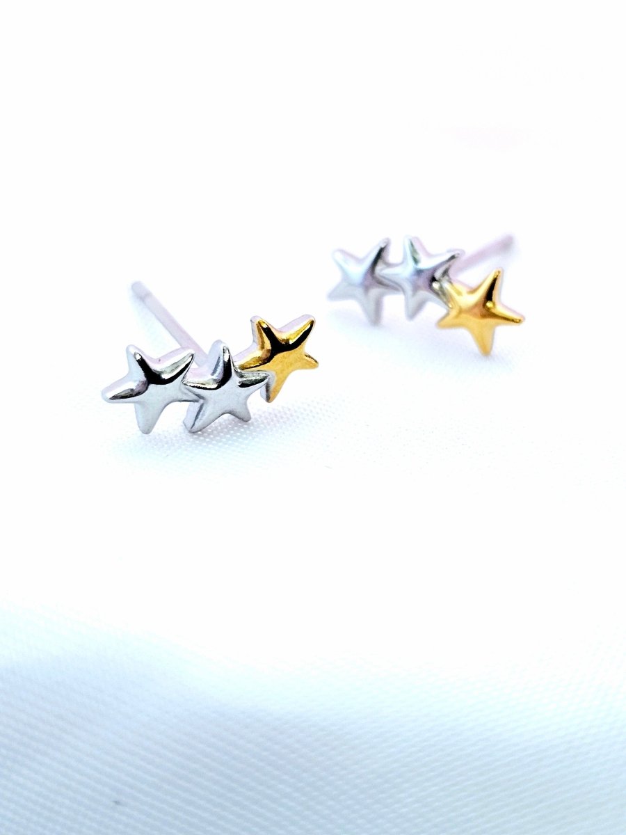 Beautiful, cute little pair of star studs; this could be one of your basic staples as they are sterling silver and Gold plated on titanium, a hypoallergenic base that keeps your jewellery tarnish free, fade-proof and waterproof, lasting for ages.