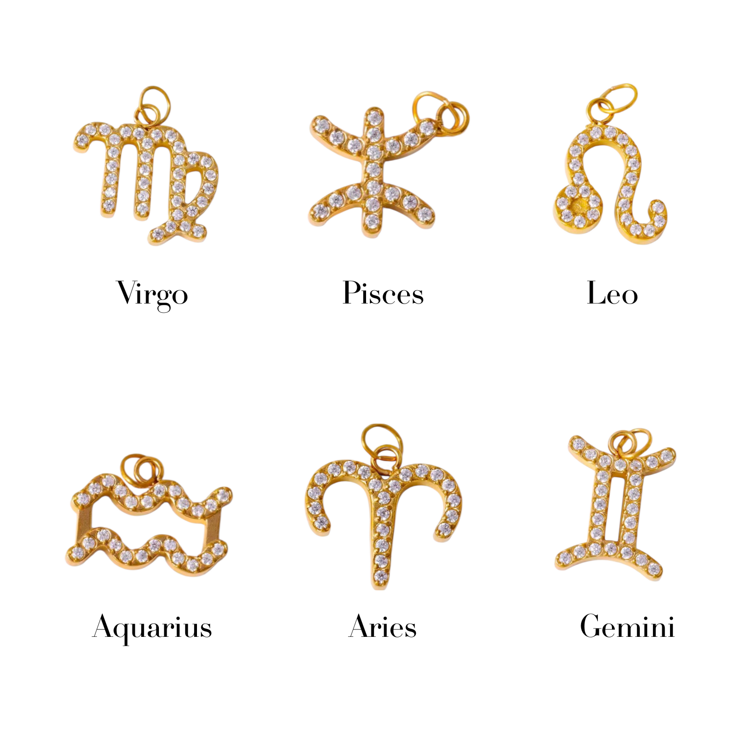 Add a touch of sparkle and meaning with our LUME Zodiac Charms, crafted in 18k gold PVD plated stainless steel and encrusted with micro-paved cubic zirconia. These astrological sign charms are waterproof, tarnish-free, and hypoallergenic, designed to shine for years to come.