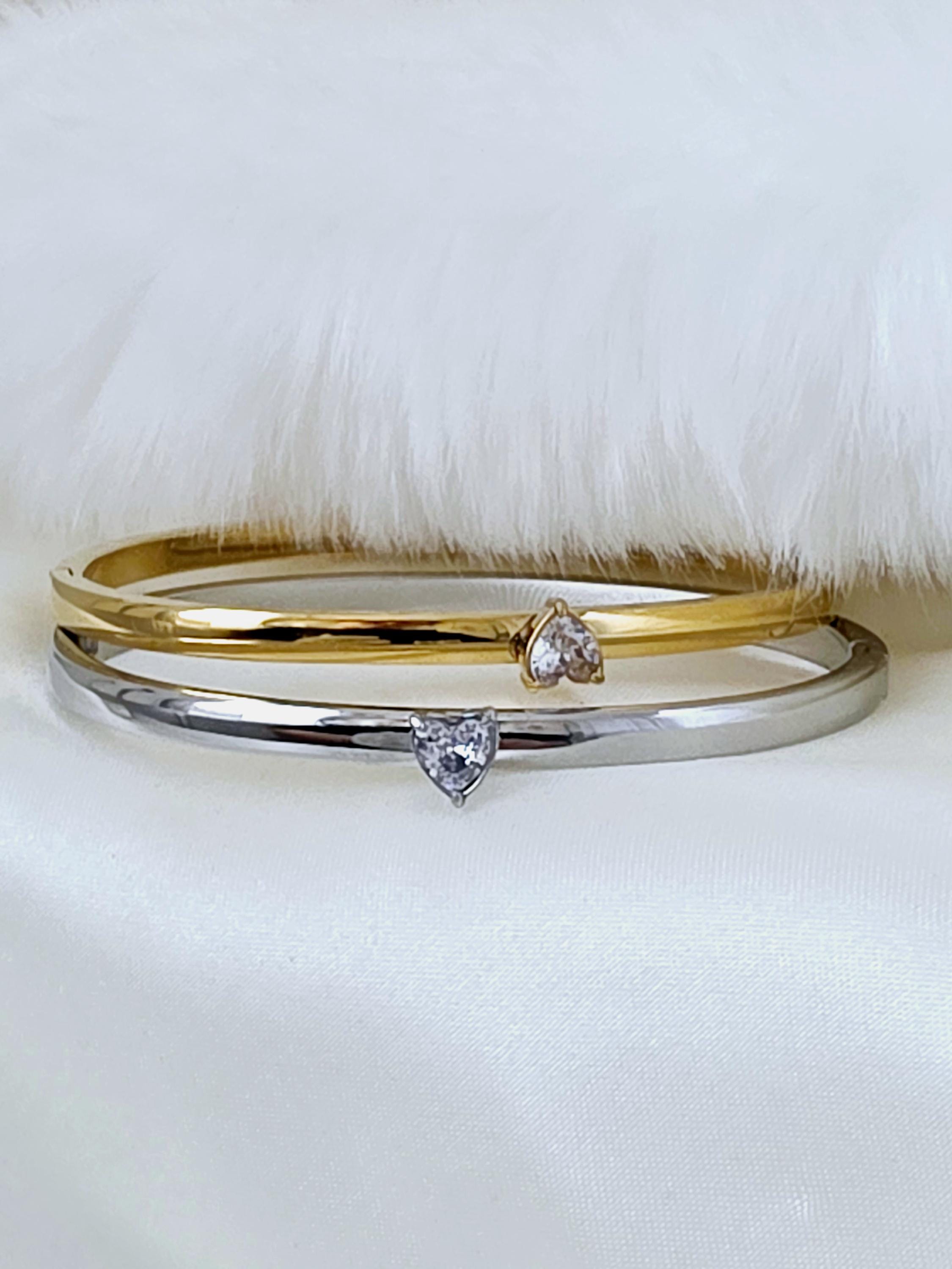 Add a touch of timeless charm to your wrist with this hinged heart bangle bracelet, designed for both everyday elegance and effortless stacking. Crafted from high-quality stainless steel and plated in 18K gold or sterling silver, this piece is waterproof, tarnish-free, and hypoallergenic, made to keep its shine no matter how often you wear it.