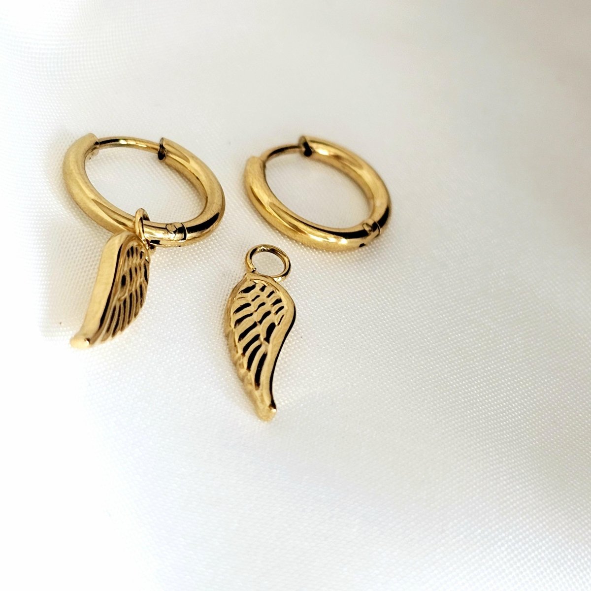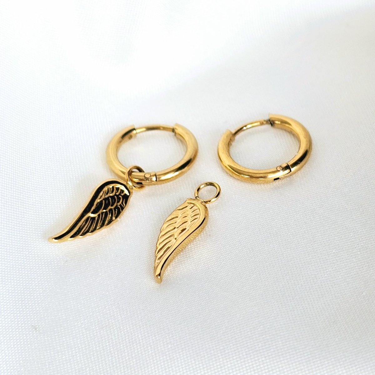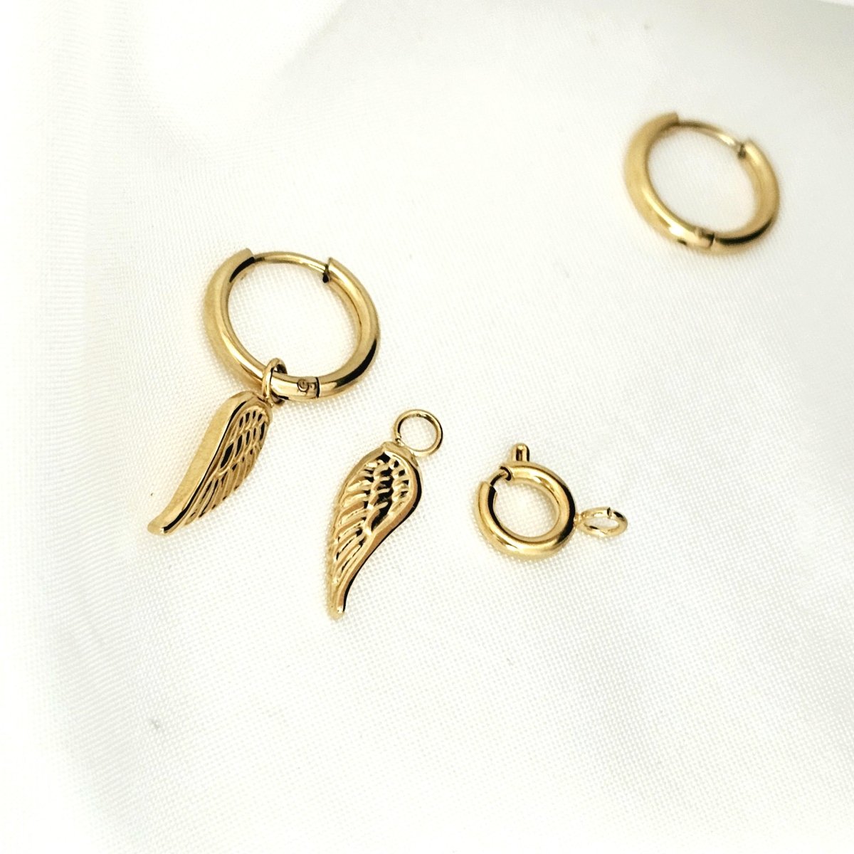 Switch up your style effortlessly—wear the hoops solo for a minimalist look or attach the angel wing charms for an added touch of elegance. The charms can also be clipped onto your bracelets or necklaces with detachable clasps, available in our store.