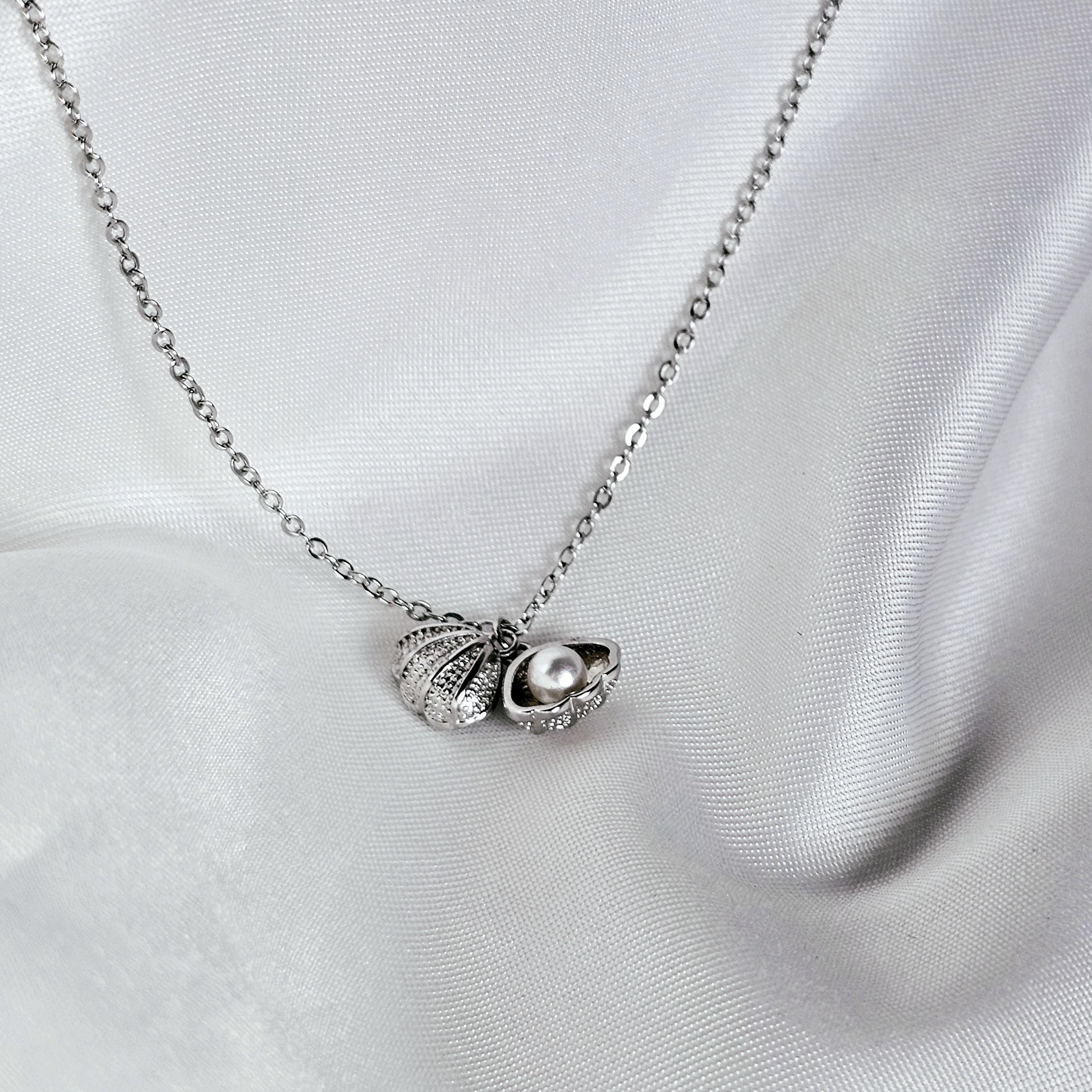 Beautiful and charming. The hinged textured silver shell easily opens to show off the gorgeous little pearl that sits gracefully inside.