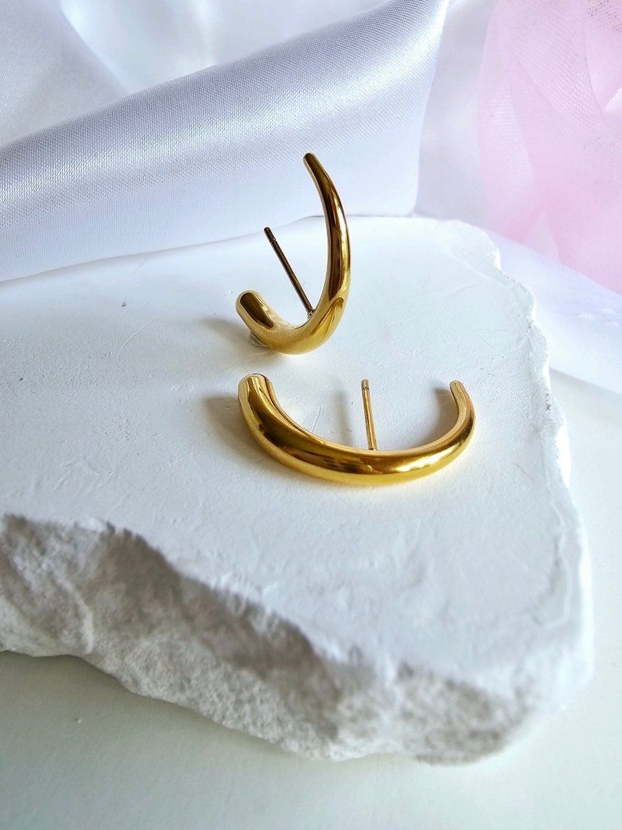 Effortlessly chic and trendy pair of tarnish free gold faux hoops
