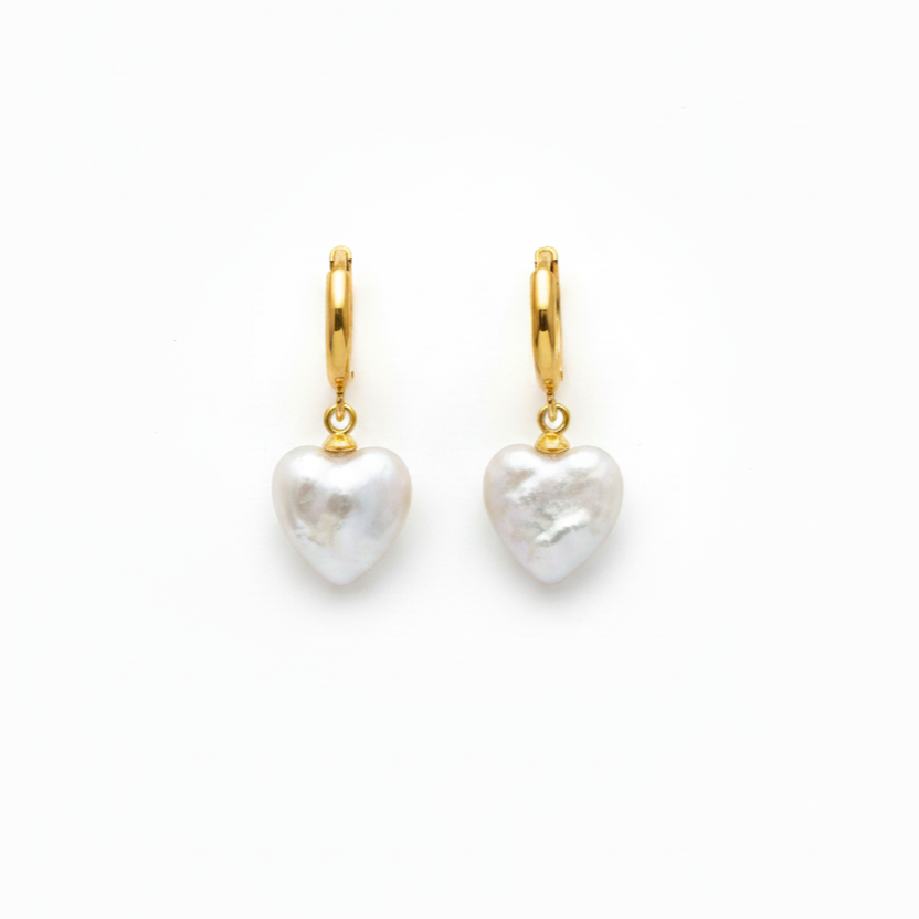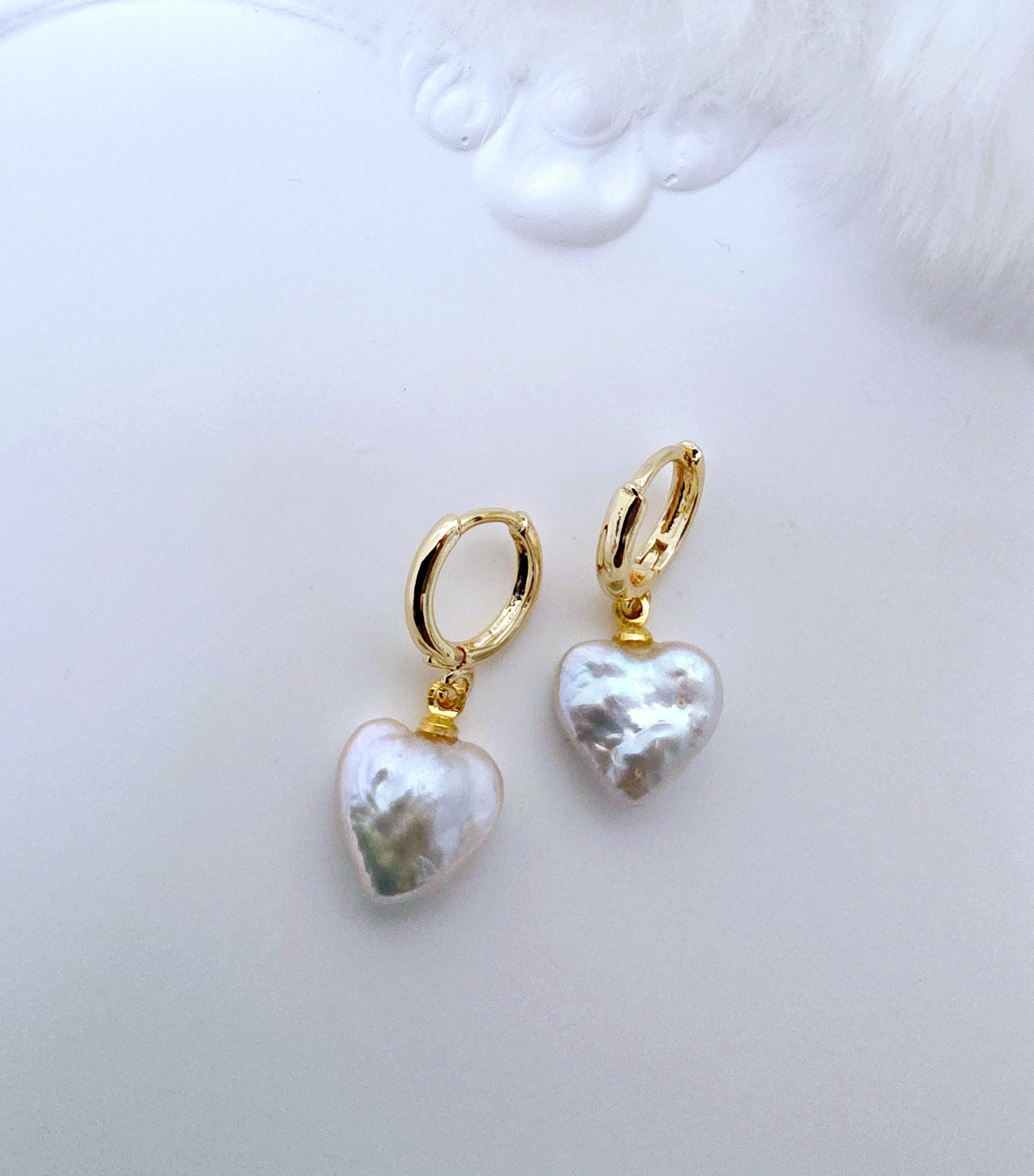 Simply and pretty 18K gold Hoops with detachable baroque pearl heart charm drops. These charms are easily removable and have enough width to slip through necklace chains and bracelets to experiment with your other lovely pieces in the jewellery box. These dangle drops are lightweight and easily wearable, minimalist design makes it effortlessly compatible with any outfit.