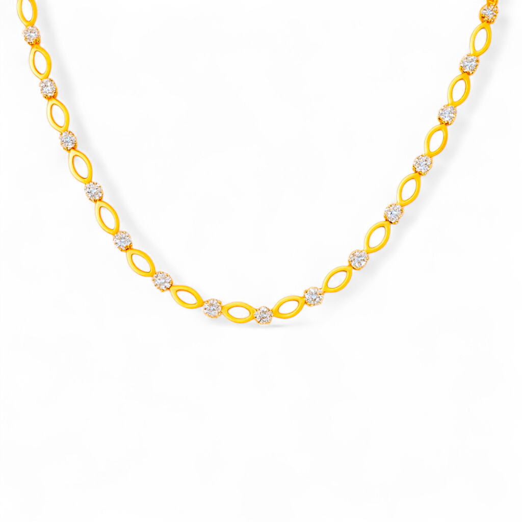 LUME Oval Paperclip Link Chain CZ Stationed Necklace