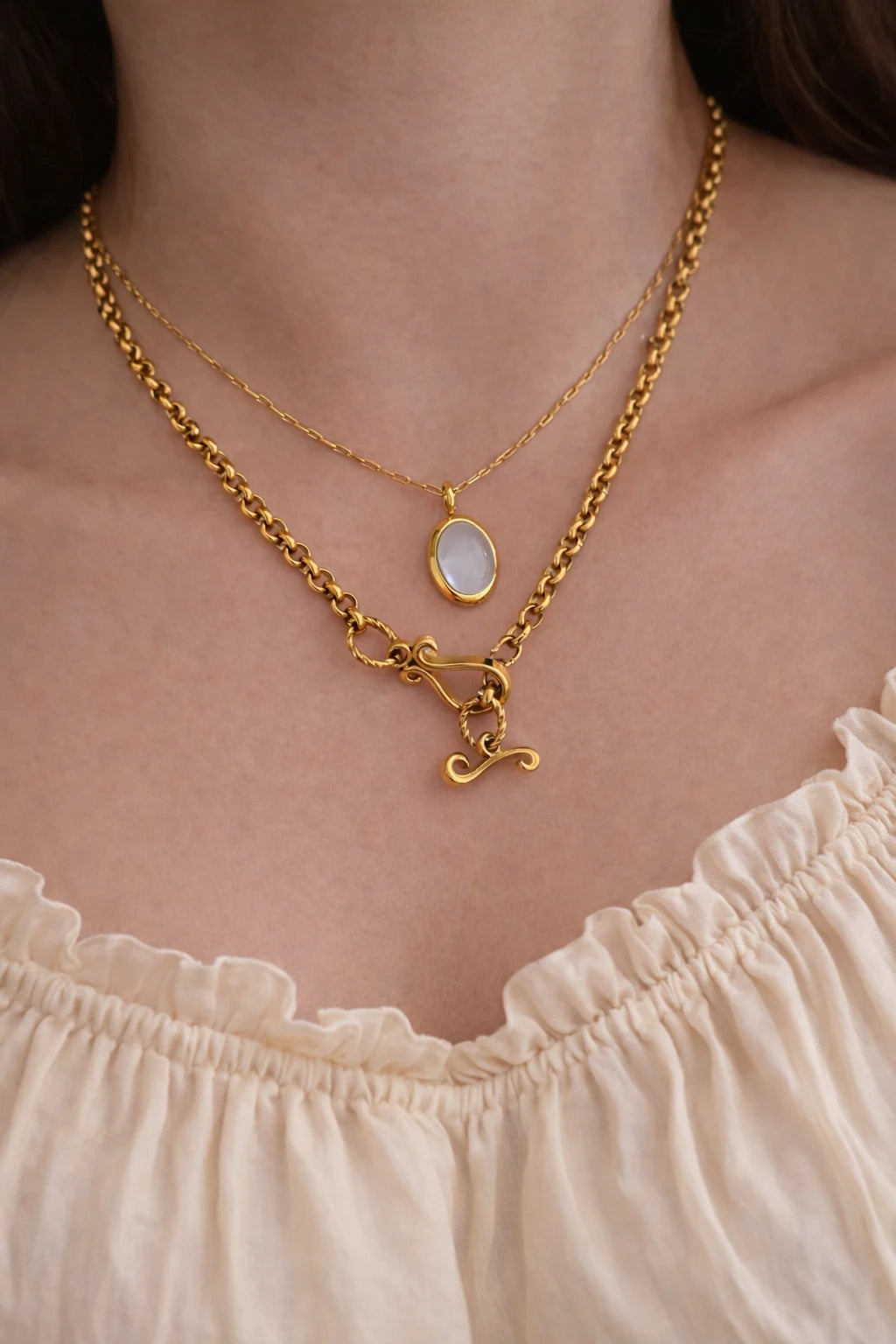 Crafted from durable stainless steel and finished in rich 18K gold, this necklace offers the perfect balance of luxury and everyday practicality. The smooth, rounded belcher links catch the light effortlessly, while the distinctive clasp adds character and individuality to a classic silhouette.