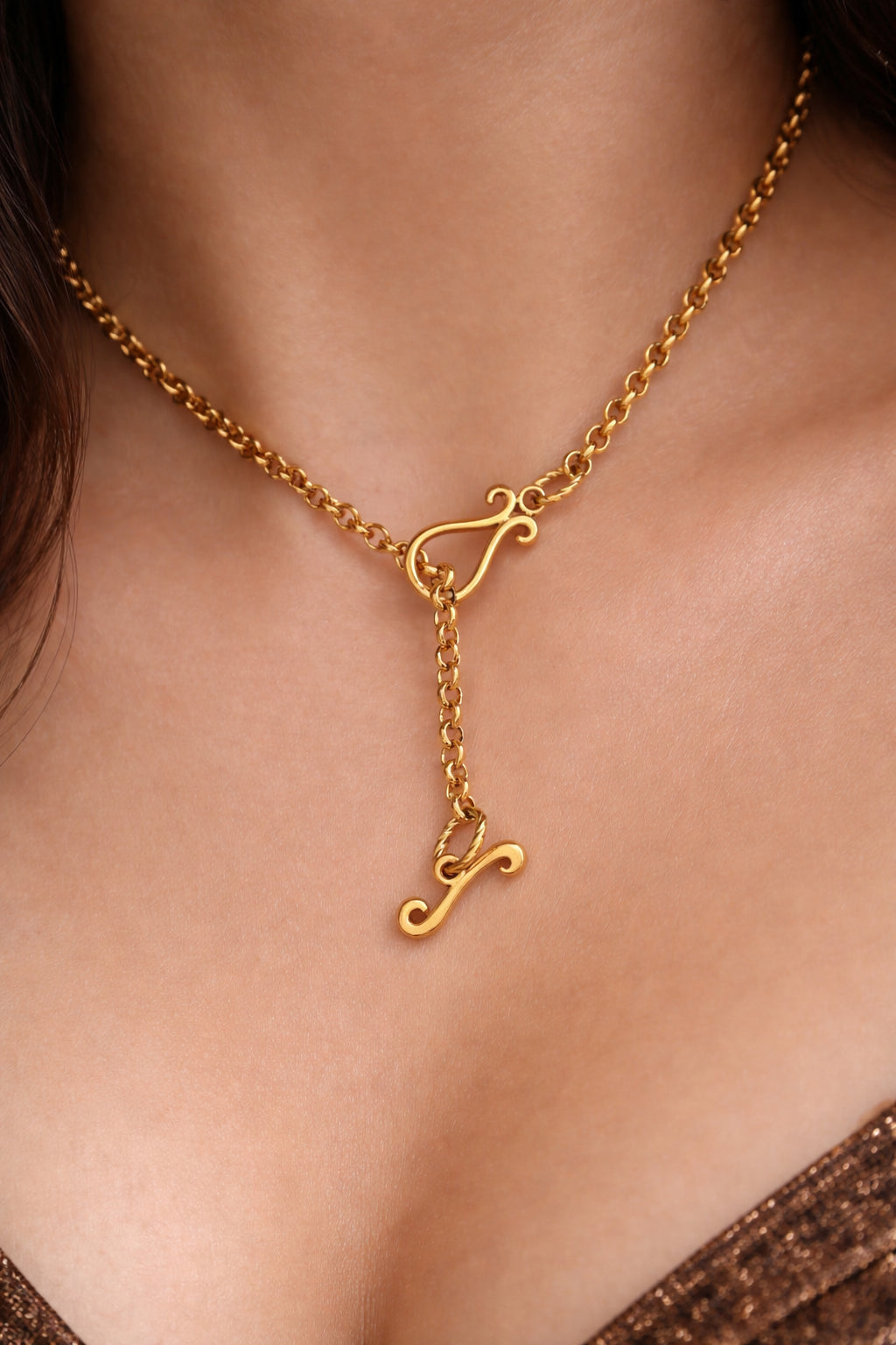 This elegant 3mm belcher (rolo) chain necklace is finished with a beautifully sculpted vintage-inspired toggle clasp, designed to be worn at the front as a feature, not hidden away.