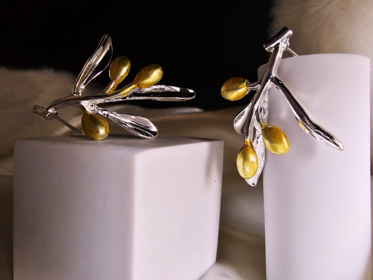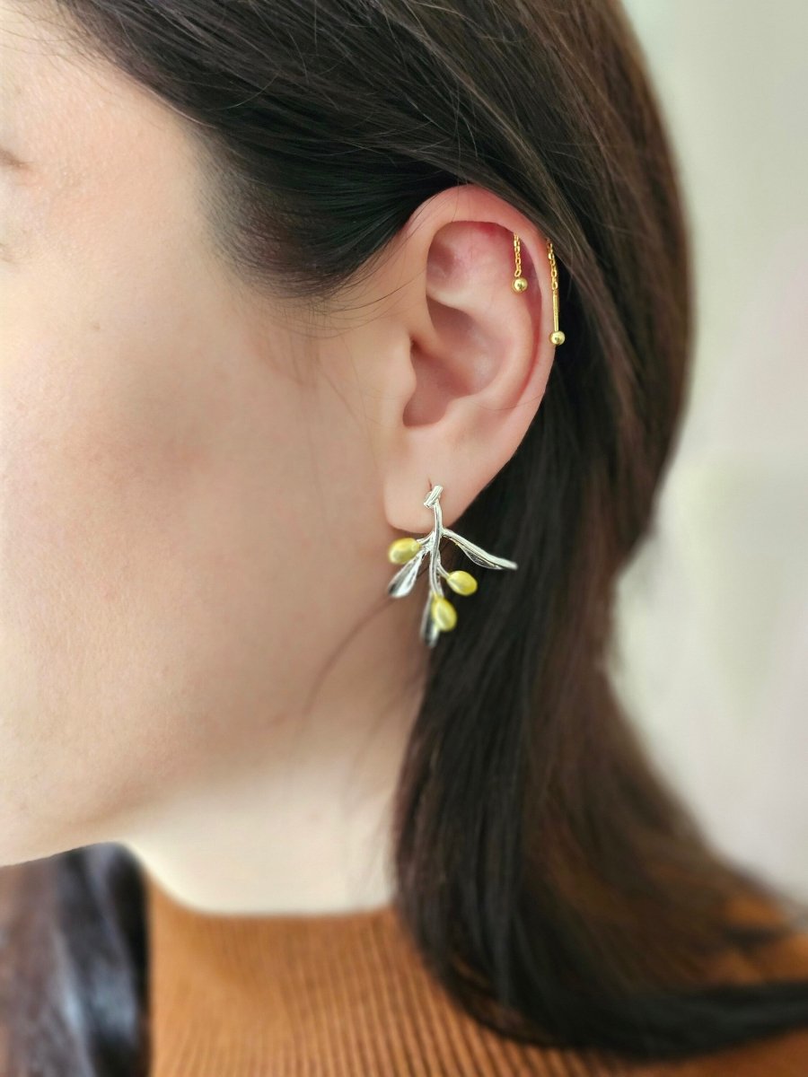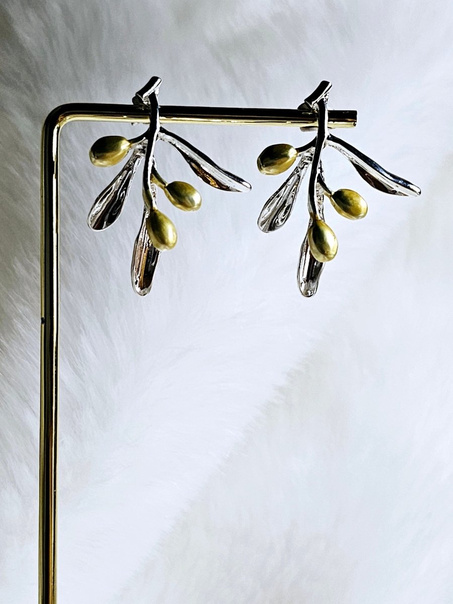 Beautiful, delicate pair of olive twigs. This gorgeous floral piece is made with love and is going to add that extra sparkle to your outfit; just thread the smooth end through your ear and get loaded with compliments.