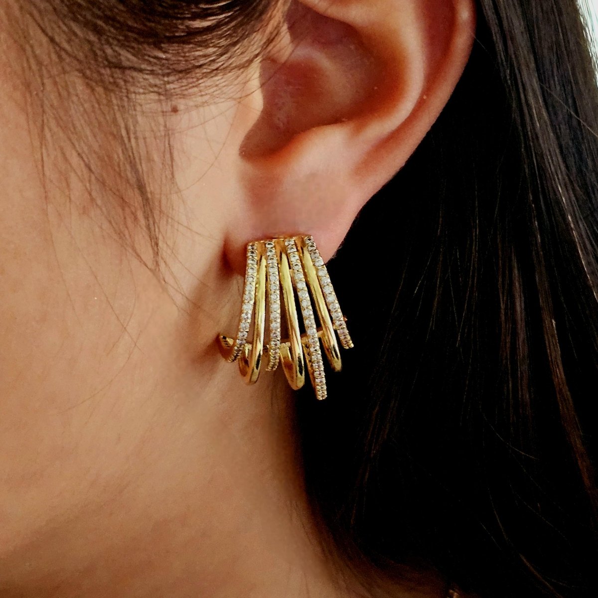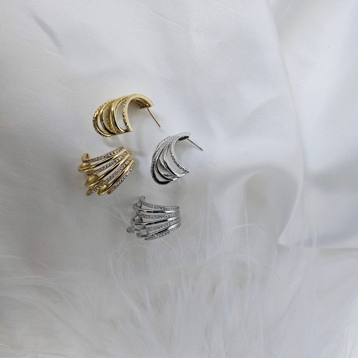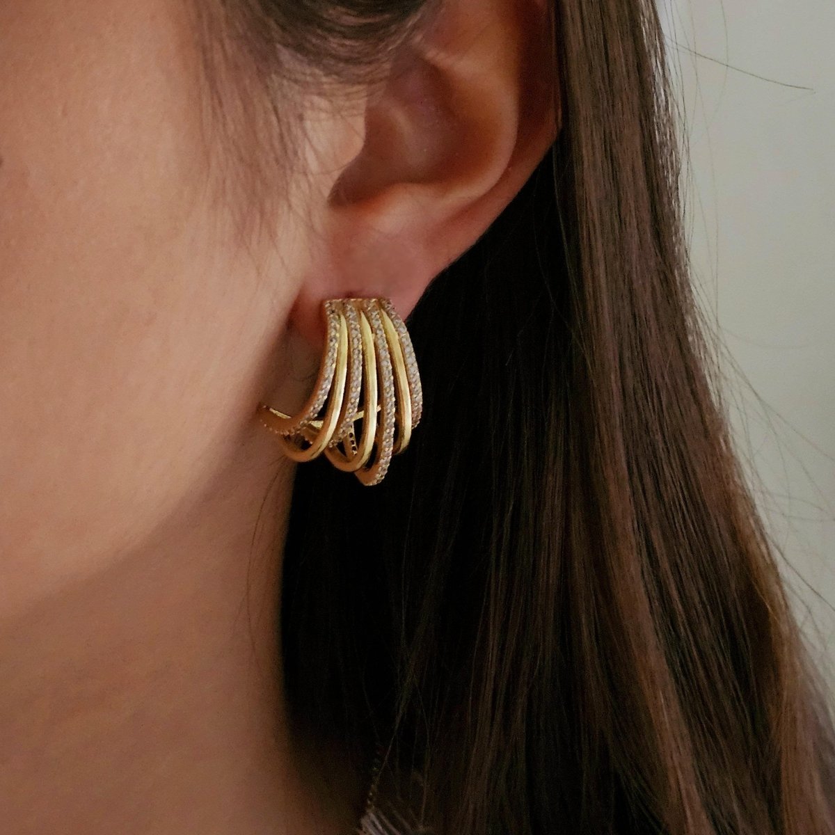 The ultimate stacking hack! Our Multi Loop Hoops are perfect for building up your jewellery looks. Each earring features a structured multiple strand hoop design for a stacked effect. The hoops has been embellished with subtle cubic zirconia stones to add some textured sparkle. Timeless, chic and just waiting to be added to your collection; wear the clear crystal studded hoops on their own to lift an evening outfit with this charming pair.