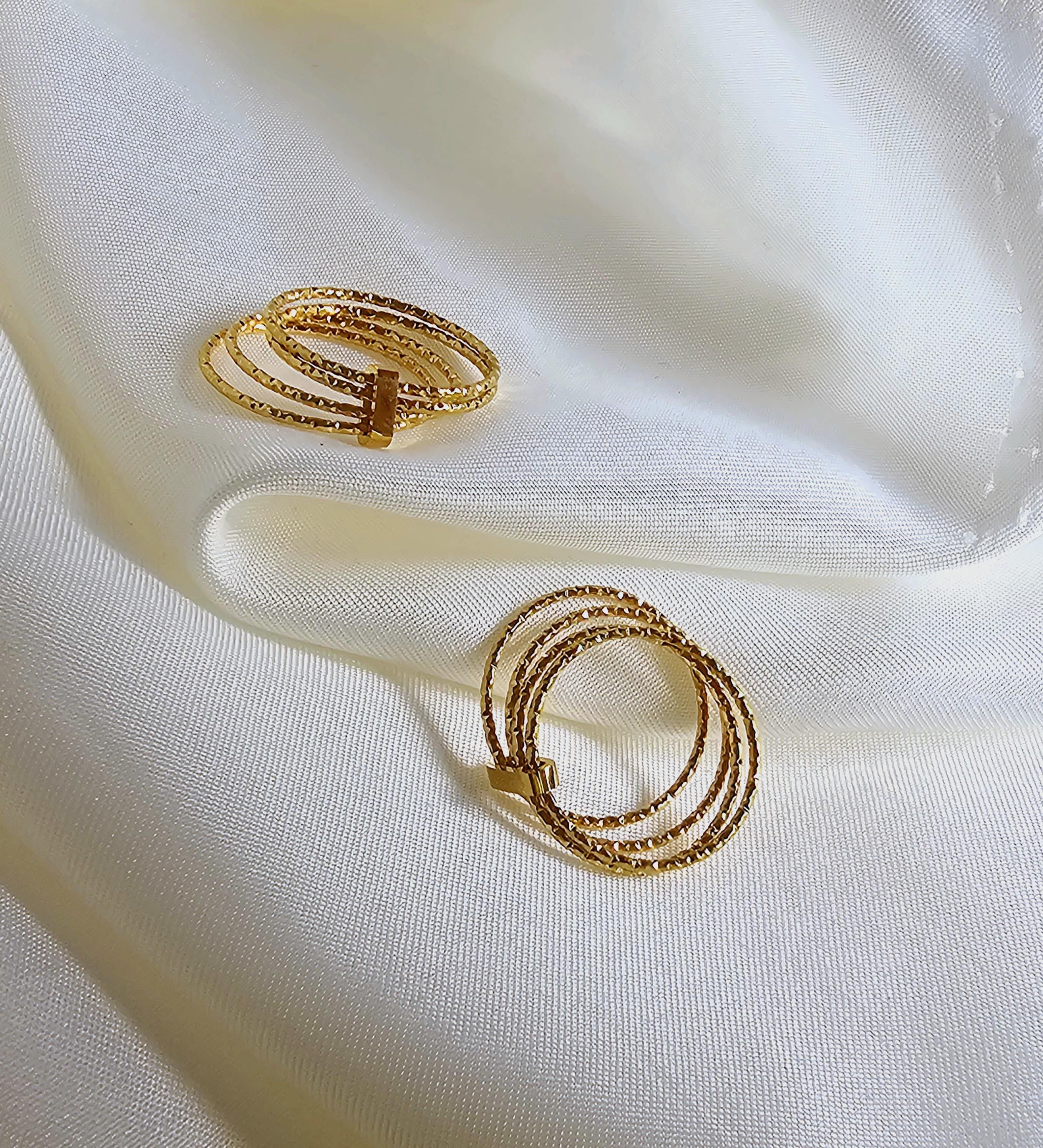 Wear them solo for a sleek minimalist vibe or pair them with chunky statement rings and dainty bands to create your own unique layered stack. Their textured design and slim profile make them versatile enough to complement everything from casual outfits to dressy ensembles.