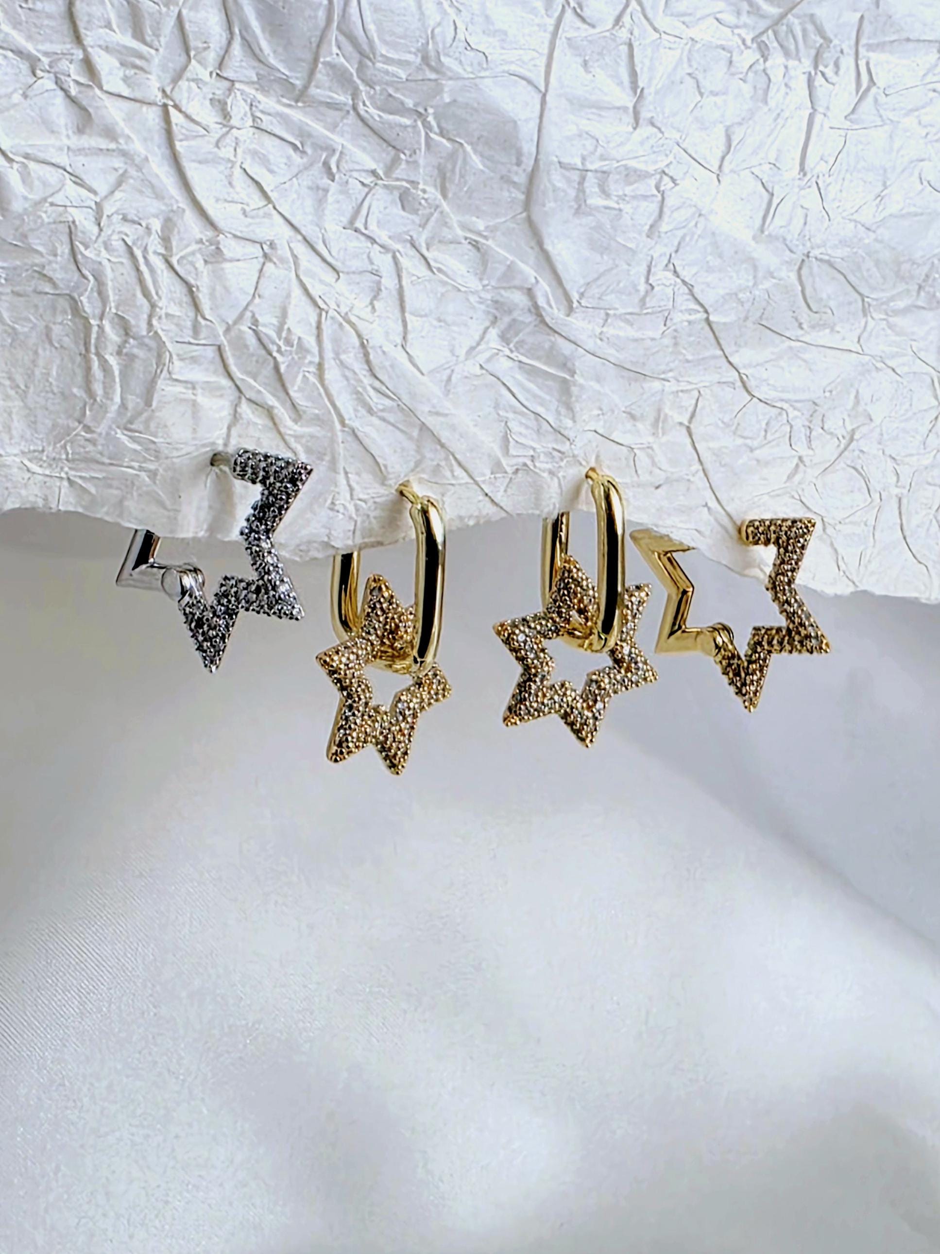 Twinkle your way through the day (and night) with these stunning Cubic Zirconia micro paved star earrings for a statement sparkle.